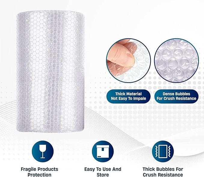 【جودة ممتازة】لفة لف الفقاعات الكبيرة جدًا هذه مصنوعة من فقاعات كبيرة، وهي قوية ومرنة وخفيفة الوزن ومقاومة للتمزق. يمكن تخزين الأكياس بسهولة وإعادة استخدامها عدة مرات. لفة تغليف فقاعات استثنائية يمكن قصها إلى لفافات فقاعات أصغر للحماية من الصدمات والاهتزازات والكشط والانبعاجات. 【تستخدم على نطاق واسع في الحياة】تحتوي لفافات التبطين الفقاعية على فقاعات هواء تشكل وسادة واقية حول منتجاتك أثناء نشرها أو إرسالها بالبريد أو تعبئتها أو نقلها أو توسيدها أو تخزينها أو شحنها. مناسب للاستخدام المنزلي والمكتب والتجاري والصناعي.【حماية العناصر القيمة والهشة】يوفر غلاف التبطين الفقاعي الحل الأمثل لحماية الأطباق القيمة والهشة أو التماثيل أو الأثاث أو الإلكترونيات أو أي أشياء أخرى شديدة التحمل من الكسر. تساعد مجموعة الملصقات القابلة للكسر سهلة التمزيق على تذكير العمال بالتعامل معها بعناية في رسائل تنبيه بسيطة وواضحة. 【تعبئة خالية من المتاعب】تمتد حتى 40 مترًا في الطول مما يساعد على تغليف الأثاث الكبير الحجم والأجهزة والمرايا وما إلى ذلك.